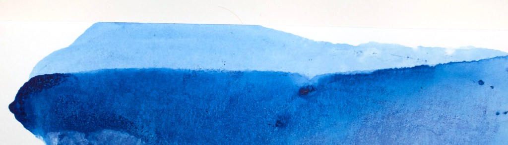 A sample showing Thalo blue oil paint (Grumbacher) that was combined with 30% Sorbitol 80 to make a water thinnable/emulsified oil paint. The paint was then sprayed with water to create the fine wash effects that are shown. There is little difference to washes made with mineral spirits or turpentine, and working time with water thinned paint is longer. For oil glazes, mix walnut oil with 30%-40% Sorbitol 80 and a small amount of oil paint, then thin with water.
