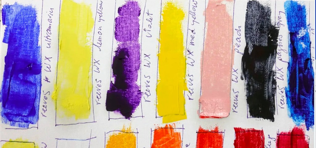 paint swatches made with the water mixable tube oil paints shown above